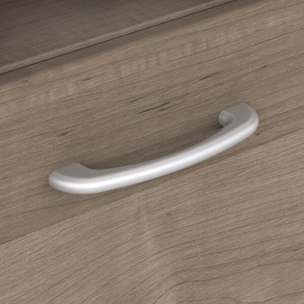 The Bush Furniture Cabot 60W L Shaped Computer Desk offers a spacious and efficient workspace for your home office. Enjoy a beautiful traditional look with smart features for your convenience. The L Shaped Desk design provides a large, durable work surface and just the right amount of storage to keep you feeling neat and organized. Desk storage details include an enclosed cabinet with stylish fluted glass door and a box drawer for supplies. A file drawer opens on smooth full-extension ball bearing slides for an effortless reach to letter, legal or A4 sized paperwork. A built-in 4-port USB hub keeps all of your devices connected while you work. The corner desk design saves space in compact areas, but provides you with 60 inches to spread out in either direction. Choose from a wide variety of contemporary and traditional finishes with stylish hardware for a simple, elegant and timeless appearance. This home office desk with storage is tested to meet ANSI/BIFMA quality standards for safety and performance. Add the Cabot Hutch (sold separately) to either side of the L Shaped Desk to create a complete home office furniture set. See the full collection for coordinating items available.