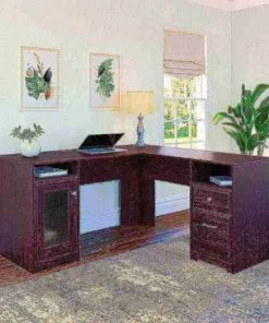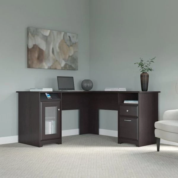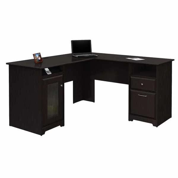The Bush Furniture Cabot 60W L Shaped Computer Desk offers a spacious and efficient workspace for your home office. Enjoy a beautiful traditional look with smart features for your convenience. The L Shaped Desk design provides a large, durable work surface and just the right amount of storage to keep you feeling neat and organized. Desk storage details include an enclosed cabinet with stylish fluted glass door and a box drawer for supplies. A file drawer opens on smooth full-extension ball bearing slides for an effortless reach to letter, legal or A4 sized paperwork. A built-in 4-port USB hub keeps all of your devices connected while you work. The corner desk design saves space in compact areas, but provides you with 60 inches to spread out in either direction. Choose from a wide variety of contemporary and traditional finishes with stylish hardware for a simple, elegant and timeless appearance. This home office desk with storage is tested to meet ANSI/BIFMA quality standards for safety and performance. Add the Cabot Hutch (sold separately) to either side of the L Shaped Desk to create a complete home office furniture set. See the full collection for coordinating items available.