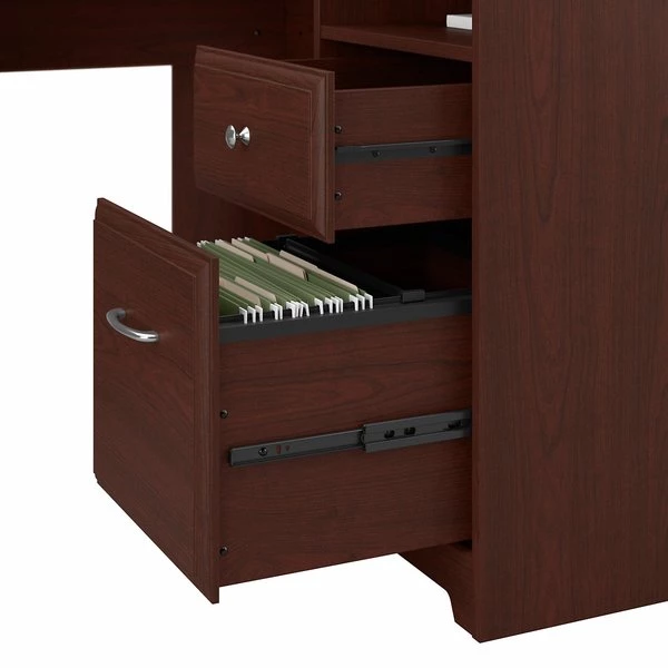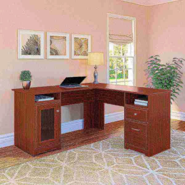 The Bush Furniture Cabot 60W L Shaped Computer Desk offers a spacious and efficient workspace for your home office. Enjoy a beautiful traditional look with smart features for your convenience. The L Shaped Desk design provides a large, durable work surface and just the right amount of storage to keep you feeling neat and organized. Desk storage details include an enclosed cabinet with stylish fluted glass door and a box drawer for supplies. A file drawer opens on smooth full-extension ball bearing slides for an effortless reach to letter, legal or A4 sized paperwork. A built-in 4-port USB hub keeps all of your devices connected while you work. The corner desk design saves space in compact areas, but provides you with 60 inches to spread out in either direction. Choose from a wide variety of contemporary and traditional finishes with stylish hardware for a simple, elegant and timeless appearance. This home office desk with storage is tested to meet ANSI/BIFMA quality standards for safety and performance. Add the Cabot Hutch (sold separately) to either side of the L Shaped Desk to create a complete home office furniture set. See the full collection for coordinating items available.
