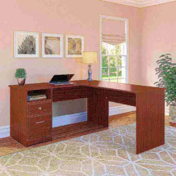 Create a stylish, functional and organized home office with the Bush Furniture Cabot 60W L Shaped Computer Desk with Drawers. The spacious work surface allows you to spread out with your laptop, papers, printer and more with room to spare. Store files and supplies in the included drawers and open cubby shelf, designed for quick and easy access. A smooth full-extension drawer opens effortlessly on reliable ball bearing slides so you'll have no trouble reaching your letter or legal-size files. Beautiful Chrome-finished hardware is the perfect match for the Espresso Oak or Harvest Cherry finish, and the space-saving desk design is ideal for placement in a corner. Backed by a Bush Furniture , the L Shaped Computer Desk with Drawers meets ANSI/SOHO quality test standards for safety and performance. See the full collection of coordinating home furnishings, and design your dream office with the elegant and efficient Cabot Collection.