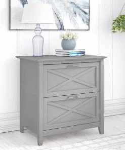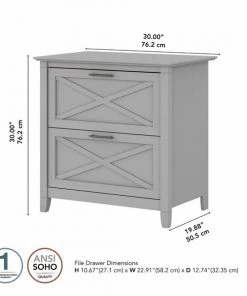 A natural fit for homes that embrace coastal and farmhouse decor, the Bush Furniture Key West 2 Drawer Lateral File Cabinet is perfect for organizing paperwork in virtually any room. Two file drawers open on smooth full-extension ball bearing slides for an easy reach to legal and letter size documents. A unique X pattern accent on the drawer panels creates a relaxed style supported by a sturdy and attractive post leg design. This 30W x 20D x 30H lateral filing cabinet matches the height of any Key West Desk (sold separately) to create an extended work surface when placed side by side. Choose from a variety of casual finish options to find the perfect look for your space. The Key West Collection offers a wide variety of farmhouse furniture that makes building a complete home office or living room ensemble a breeze. This 2 drawer filing cabinet is tested to meet ANSI/SOHO quality standards for safety and performance. See the full collection for coordinating items available.