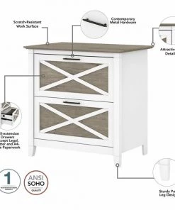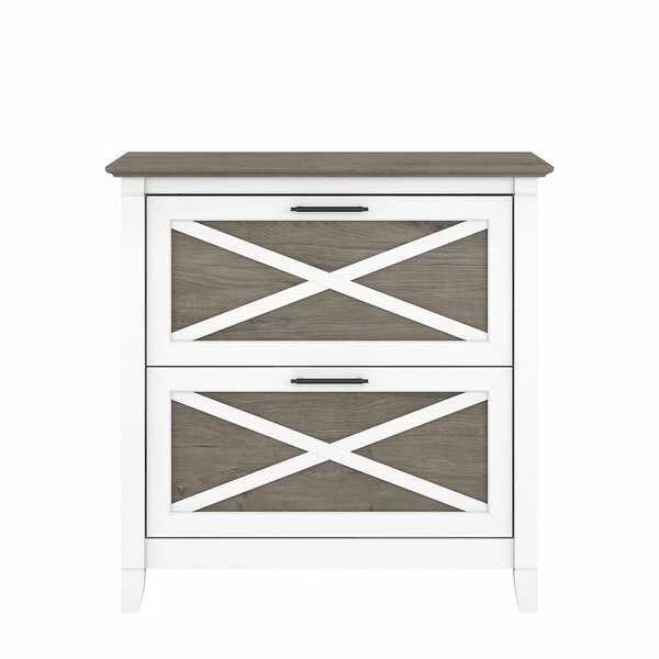A natural fit for homes that embrace coastal and farmhouse decor, the Bush Furniture Key West 2 Drawer Lateral File Cabinet is perfect for organizing paperwork in virtually any room. Two file drawers open on smooth full-extension ball bearing slides for an easy reach to legal and letter size documents. A unique X pattern accent on the drawer panels creates a relaxed style supported by a sturdy and attractive post leg design. This 30W x 20D x 30H lateral filing cabinet matches the height of any Key West Desk (sold separately) to create an extended work surface when placed side by side. Choose from a variety of casual finish options to find the perfect look for your space. The Key West Collection offers a wide variety of farmhouse furniture that makes building a complete home office or living room ensemble a breeze. This 2 drawer filing cabinet is tested to meet ANSI/SOHO quality standards for safety and performance. See the full collection for coordinating items available.