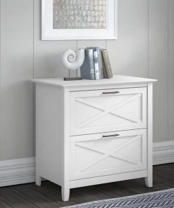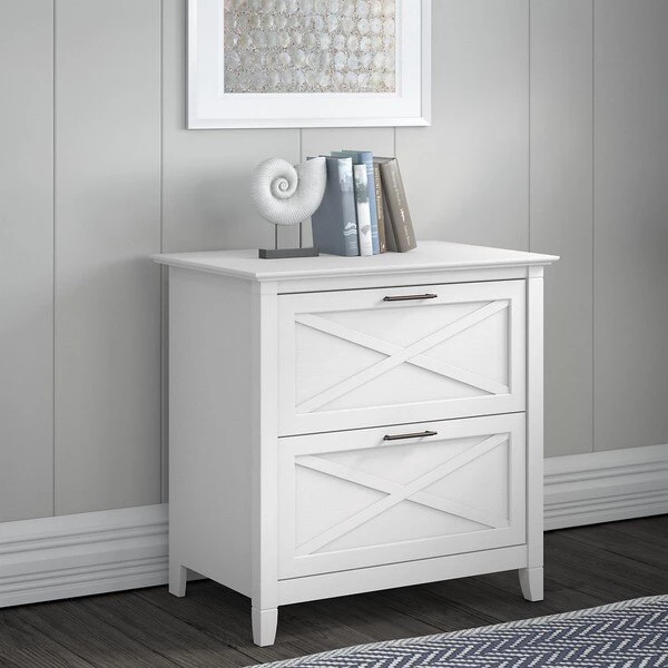 A natural fit for homes that embrace coastal and farmhouse decor, the Bush Furniture Key West 2 Drawer Lateral File Cabinet is perfect for organizing paperwork in virtually any room. Two file drawers open on smooth full-extension ball bearing slides for an easy reach to legal and letter size documents. A unique X pattern accent on the drawer panels creates a relaxed style supported by a sturdy and attractive post leg design. This 30W x 20D x 30H lateral filing cabinet matches the height of any Key West Desk (sold separately) to create an extended work surface when placed side by side. Choose from a variety of casual finish options to find the perfect look for your space. The Key West Collection offers a wide variety of farmhouse furniture that makes building a complete home office or living room ensemble a breeze. This 2 drawer filing cabinet is tested to meet ANSI/SOHO quality standards for safety and performance. See the full collection for coordinating items available.