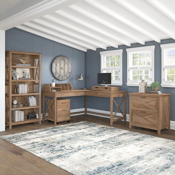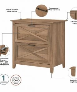 A natural fit for homes that embrace coastal and farmhouse decor, the Bush Furniture Key West 2 Drawer Lateral File Cabinet is perfect for organizing paperwork in virtually any room. Two file drawers open on smooth full-extension ball bearing slides for an easy reach to legal and letter size documents. A unique X pattern accent on the drawer panels creates a relaxed style supported by a sturdy and attractive post leg design. This 30W x 20D x 30H lateral filing cabinet matches the height of any Key West Desk (sold separately) to create an extended work surface when placed side by side. Choose from a variety of casual finish options to find the perfect look for your space. The Key West Collection offers a wide variety of farmhouse furniture that makes building a complete home office or living room ensemble a breeze. This 2 drawer filing cabinet is tested to meet ANSI/SOHO quality standards for safety and performance. See the full collection for coordinating items available.