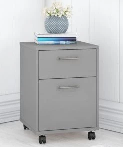 The Bush Furniture Key West 2 Drawer Mobile File Cabinet combines modern functionality and space efficiency to offer an ideal storage solution for your home office. A convenient box drawer organizes writing utensils, notepads and more so the supplies you need are never out of reach. The file drawer opens on smooth full-extension ball bearing slides for easy access to letter size paperwork. This rolling File Cabinet features locking front casters for secure placement and is finished on all sides to look great facing any direction. At 16W x 16D x 22H, the 2 drawer filing cabinet fits conveniently under coordinating Key West Desks (sold separately) to create an all-in-one personal workspace. Choose from a variety of casual finishes for a look that blends seamlessly with coastal and farmhouse decor. This 2 Drawer File Cabinet is tested to meet ANSI/SOHO quality standards for safety and performance. See the full collection for coordinating items available and let Key West turn your home office or living room into an island escape.