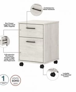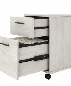 The Bush Furniture Key West 2 Drawer Mobile File Cabinet combines modern functionality and space efficiency to offer an ideal storage solution for your home office. A convenient box drawer organizes writing utensils, notepads and more so the supplies you need are never out of reach. The file drawer opens on smooth full-extension ball bearing slides for easy access to letter size paperwork. This rolling File Cabinet features locking front casters for secure placement and is finished on all sides to look great facing any direction. At 16W x 16D x 22H, the 2 drawer filing cabinet fits conveniently under coordinating Key West Desks (sold separately) to create an all-in-one personal workspace. Choose from a variety of casual finishes for a look that blends seamlessly with coastal and farmhouse decor. This 2 Drawer File Cabinet is tested to meet ANSI/SOHO quality standards for safety and performance. See the full collection for coordinating items available and let Key West turn your home office or living room into an island escape.
