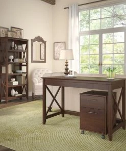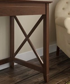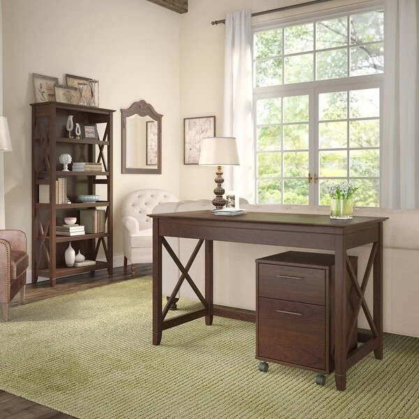 Take on your daily tasks from the comfort of a spacious personal work area, even in small office environments. The Bush Furniture Key West 48W Writing Desk offers more than enough room to spread out with a laptop and paperwork as you surf the web, pay bills or check the mail. Featuring side panels with unique X pattern accents, this office desk creates a relaxed and airy style supported by a sturdy and attractive post leg design. The durable work surface has a weight capacity of 200 pounds so you can confidently keep books and other work materials close by. Measuring 48W x 24D x 30H, this Writing Desk is perfect for use as a sofa table, console table or personal work area and is finished on all sides to look great facing any direction. Expand your workspace with a variety of coordinating items including Desktop Organizers (sold separately) and let the Key West Collection turn your home office or living room into an island escape. Your choice of casual finishes blends seamlessly with homes that embrace coastal and farmhouse decor. This small computer desk is tested to meet ANSI/SOHO quality standards for safety and performance. See the full collection for coordinating items available.