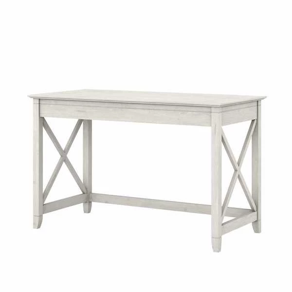 Take on your daily tasks from the comfort of a spacious personal work area, even in small office environments. The Bush Furniture Key West 48W Writing Desk offers more than enough room to spread out with a laptop and paperwork as you surf the web, pay bills or check the mail. Featuring side panels with unique X pattern accents, this office desk creates a relaxed and airy style supported by a sturdy and attractive post leg design. The durable work surface has a weight capacity of 200 pounds so you can confidently keep books and other work materials close by. Measuring 48W x 24D x 30H, this Writing Desk is perfect for use as a sofa table, console table or personal work area and is finished on all sides to look great facing any direction. Expand your workspace with a variety of coordinating items including Desktop Organizers (sold separately) and let the Key West Collection turn your home office or living room into an island escape. Your choice of casual finishes blends seamlessly with homes that embrace coastal and farmhouse decor. This small computer desk is tested to meet ANSI/SOHO quality standards for safety and performance. See the full collection for coordinating items available.