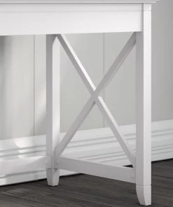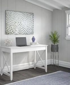 Take on your daily tasks from the comfort of a spacious personal work area, even in small office environments. The Bush Furniture Key West 48W Writing Desk offers more than enough room to spread out with a laptop and paperwork as you surf the web, pay bills or check the mail. Featuring side panels with unique X pattern accents, this office desk creates a relaxed and airy style supported by a sturdy and attractive post leg design. The durable work surface has a weight capacity of 200 pounds so you can confidently keep books and other work materials close by. Measuring 48W x 24D x 30H, this Writing Desk is perfect for use as a sofa table, console table or personal work area and is finished on all sides to look great facing any direction. Expand your workspace with a variety of coordinating items including Desktop Organizers (sold separately) and let the Key West Collection turn your home office or living room into an island escape. Your choice of casual finishes blends seamlessly with homes that embrace coastal and farmhouse decor. This small computer desk is tested to meet ANSI/SOHO quality standards for safety and performance. See the full collection for coordinating items available.