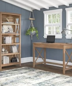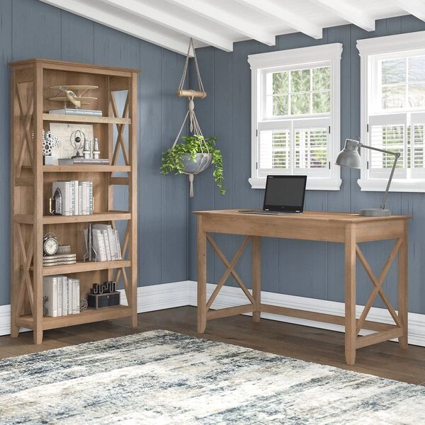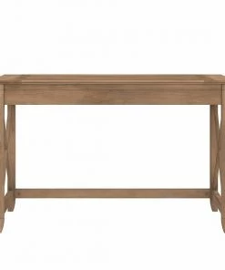 Take on your daily tasks from the comfort of a spacious personal work area, even in small office environments. The Bush Furniture Key West 48W Writing Desk offers more than enough room to spread out with a laptop and paperwork as you surf the web, pay bills or check the mail. Featuring side panels with unique X pattern accents, this office desk creates a relaxed and airy style supported by a sturdy and attractive post leg design. The durable work surface has a weight capacity of 200 pounds so you can confidently keep books and other work materials close by. Measuring 48W x 24D x 30H, this Writing Desk is perfect for use as a sofa table, console table or personal work area and is finished on all sides to look great facing any direction. Expand your workspace with a variety of coordinating items including Desktop Organizers (sold separately) and let the Key West Collection turn your home office or living room into an island escape. Your choice of casual finishes blends seamlessly with homes that embrace coastal and farmhouse decor. This small computer desk is tested to meet ANSI/SOHO quality standards for safety and performance. See the full collection for coordinating items available.