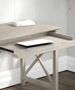 The Bush Furniture Key West 54W Computer Desk with 2 Drawer Lateral File Cabinet offers a refreshing approach to working in your home. Spread out with a computer, books and paperwork as you take on your next project or assignment on a durable 54W x 24D desktop that boasts a weight capacity of 200 pounds. The convenient top drawer is an ideal place to store your keyboard, laptop or tablet and has a flip down front that folds up neatly when not in use. The Desk also includes a built-in storage cabinet with one adjustable shelf to accommodate materials of various sizes. Matching 30H height dimensions allow you to create an extended work surface by placing the office desk and lateral filing cabinet side by side. Two large file drawers open on smooth full-extension ball bearing slides for an easy reach to legal and letter size documents. Unique X pattern accents give this home office furniture set a relaxed feel with a sturdy and attractive post leg design. Find the perfect look for your space with a variety of casual finish options. This desk with drawers set is tested to meet ANSI/SOHO quality standards for safety and performance. See the full collection for coordinating items available and let Key West turn your work or living space into an island escape.