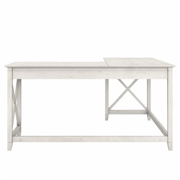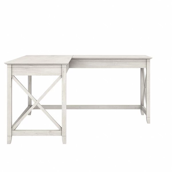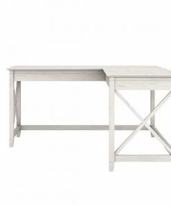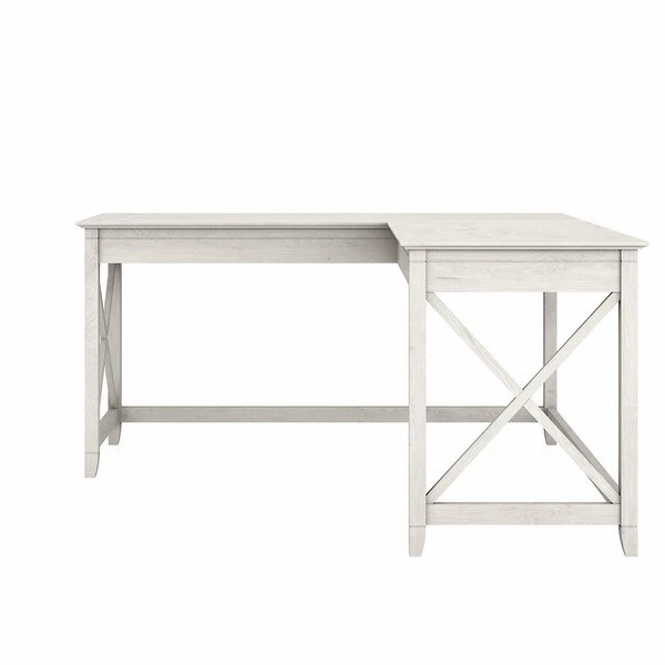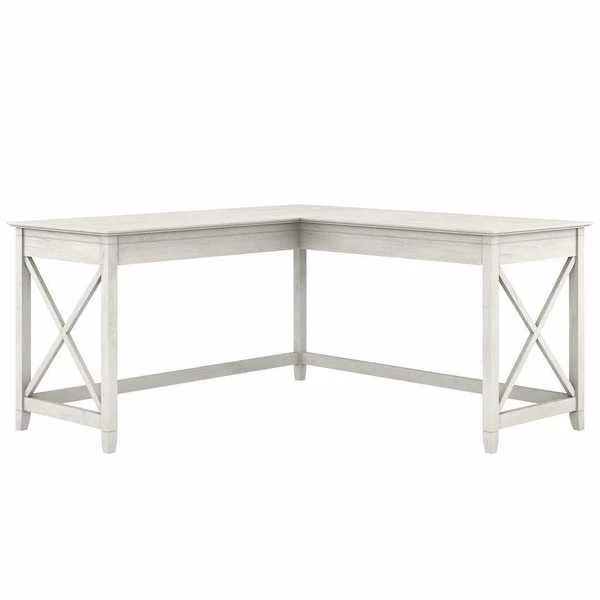With its practical design and easy going style, the Bush Furniture Key West 60W L Shaped Desk offers an ideal workspace solution for home offices. Save floor space in compact areas by placing the Desk in a corner or make use of the fully finished back to take a prominent position in the middle of the room. At 60W x 60D, the durable work surface is spacious enough to spread out with a computer, paperwork and more when taking on your task of the day or just browsing the web. A sturdy post leg design with unique X pattern accents on the side panels creates a relaxed, open appearance while thoughtful construction and quality materials allow the corner desk to support up to 200 pounds. Available in your choice of several casual finish options, this office desk is a perfect choice for homes that embrace coastal and farmhouse decor. Complete your workspace with a wide range of coordinating Key West products including Desktop Organizers, File Cabinets and a 5 Shelf Bookcase (all sold separately). The L shaped computer desk is tested to meet ANSI/SOHO quality standards for safety and performance.