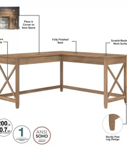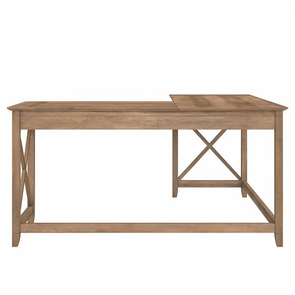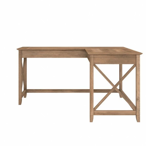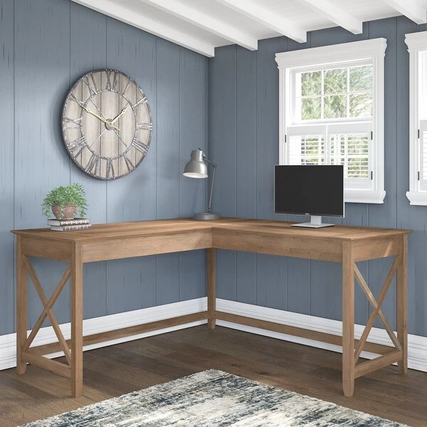 With its practical design and easy going style, the Bush Furniture Key West 60W L Shaped Desk offers an ideal workspace solution for home offices. Save floor space in compact areas by placing the Desk in a corner or make use of the fully finished back to take a prominent position in the middle of the room. At 60W x 60D, the durable work surface is spacious enough to spread out with a computer, paperwork and more when taking on your task of the day or just browsing the web. A sturdy post leg design with unique X pattern accents on the side panels creates a relaxed, open appearance while thoughtful construction and quality materials allow the corner desk to support up to 200 pounds. Available in your choice of several casual finish options, this office desk is a perfect choice for homes that embrace coastal and farmhouse decor. Complete your workspace with a wide range of coordinating Key West products including Desktop Organizers, File Cabinets and a 5 Shelf Bookcase (all sold separately). The L shaped computer desk is tested to meet ANSI/SOHO quality standards for safety and performance.