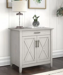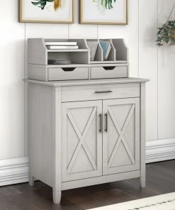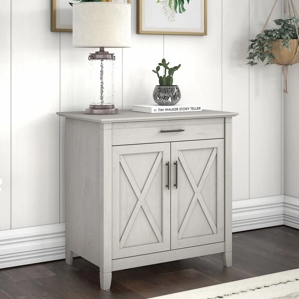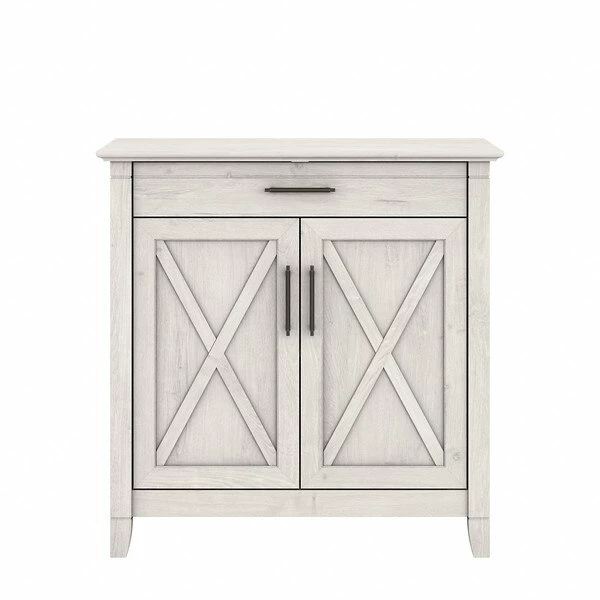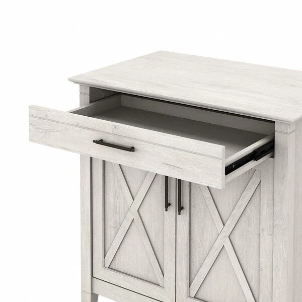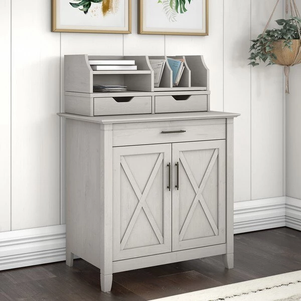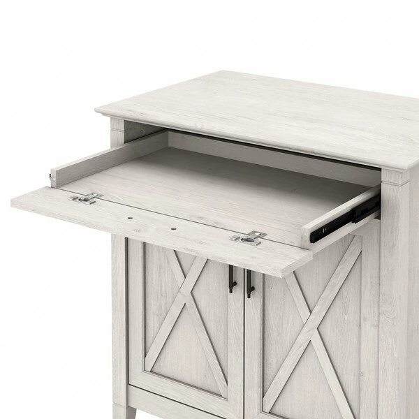 Use the compact Bush Furniture Key West Secretary Desk with Keyboard Tray and Storage Cabinet to create an office as big or small as you want. This small computer desk provides a central location for your laptop and is a casual storage solution that works subtly in any room. The convenient pull out Keyboard Tray with flip down front folds up neatly when not in use and includes wire management. The drawer opens on full-extension ball bearing slides for an easy reach to contents and reliable everyday use. The built-in storage cabinet features one adjustable shelf to help you organize work materials and supplies of various sizes. Unique X pattern accents on the door panels give the armoire desk a relaxed style with a sturdy and attractive post leg design. Choose from several attractive finish options for a look that blends seamlessly with coastal and farmhouse decor. Personalize your Credenza with coordinating Desktop Organizers (sold separately) to keep everything in its place. This small Desk with Storage is tested to meet ANSI/SOHO quality standards for safety and performance. See the full collection for coordinating items available and let Key West turn your home office or living room into an island escape.