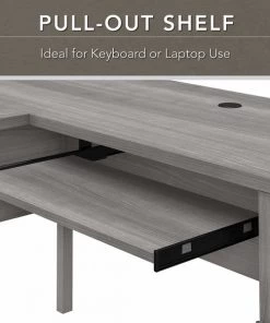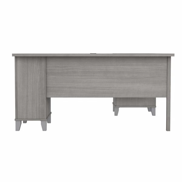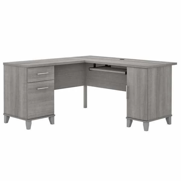 Make a professional statement while maximizing the potential of your home office with the Bush Furniture Somerset 60W L Shaped Desk. This expansive workspace offers plenty of room to spread out and complete large projects. Create your remote work headquarters with space for a computer, phone, printer and more with wire management to keep cords and cables secure and out of sight. A convenient pull-out shelf provides a perfect place to keep a keyboard or laptop. The stylish and functional L Shaped Desk design includes a vertical storage cabinet with an adjustable shelf to store items of various sizes. Place pens, paper and more office utensils in the box drawer, and enjoy a file drawer gliding on smooth ball bearing slides for an easy reach to letter-sized documents. The keyboard tray and pedestals mount on either side of the corner desk for a customizable home office design. Transitional styling includes your choice of attractive finishes with tapered leg accents and contemporary metal hardware for an alluring appearance to match your current decor. This home office desk with storage is tested to meet ANSI/SOHO quality standards for safety and performance. Add the coordinating 60W Hutch (sold separately) for additional storage and display capacity and see the full Somerset Collection for items available to complete your workspace.