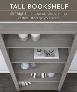 Add a touch of professional style to your workspace with the Bush Furniture Somerset 60W Office Desk with Lateral File Cabinet and 5 Shelf Bookcase. With its practical features and a sophisticated design, this set offers an ideal solution to outfit a home or small office. The durable and spacious 60W surface provides plenty of room to spread out with a computer, paperwork and more while taking on your daily tasks. Two file drawers hold letter size files and a pair of box drawers accommodate office supplies. The back of the Desk is finished to allow for placement anywhere in the room. The 2 Drawer File Cabinet utilizes smooth full-extension ball bearing slides for easy access to legal, letter and A4-size files, even those all the way in the back. Drawers are designed to open one at a time for maximum stability. Two of the Bookcase's shelves are fixed for stability and three are adjustable to ensure that items of all sizes have their place. Transitional styling includes your choice of several attractive finishes with tapered leg accents and contemporary metal hardware for an alluring appearance. See the full line of products from the Somerset Collection to make a professional statement in your personal workspace. This home office furniture set is tested to meet ANSI/SOHO quality standards for safety and performance.