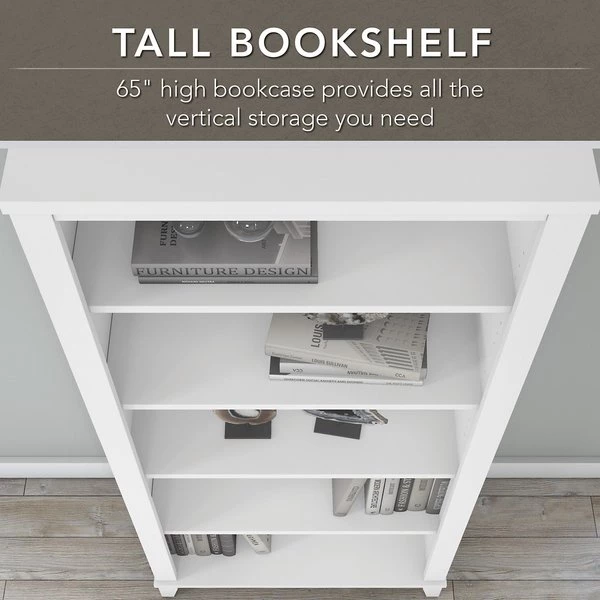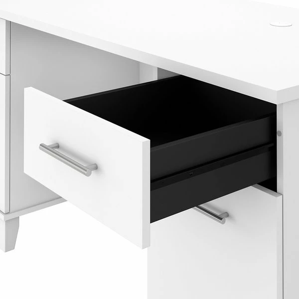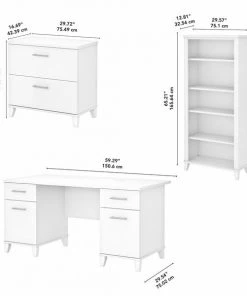 Add a touch of professional style to your workspace with the Bush Furniture Somerset 60W Office Desk with Lateral File Cabinet and 5 Shelf Bookcase. With its practical features and a sophisticated design, this set offers an ideal solution to outfit a home or small office. The durable and spacious 60W surface provides plenty of room to spread out with a computer, paperwork and more while taking on your daily tasks. Two file drawers hold letter size files and a pair of box drawers accommodate office supplies. The back of the Desk is finished to allow for placement anywhere in the room. The 2 Drawer File Cabinet utilizes smooth full-extension ball bearing slides for easy access to legal, letter and A4-size files, even those all the way in the back. Drawers are designed to open one at a time for maximum stability. Two of the Bookcase's shelves are fixed for stability and three are adjustable to ensure that items of all sizes have their place. Transitional styling includes your choice of several attractive finishes with tapered leg accents and contemporary metal hardware for an alluring appearance. See the full line of products from the Somerset Collection to make a professional statement in your personal workspace. This home office furniture set is tested to meet ANSI/SOHO quality standards for safety and performance.