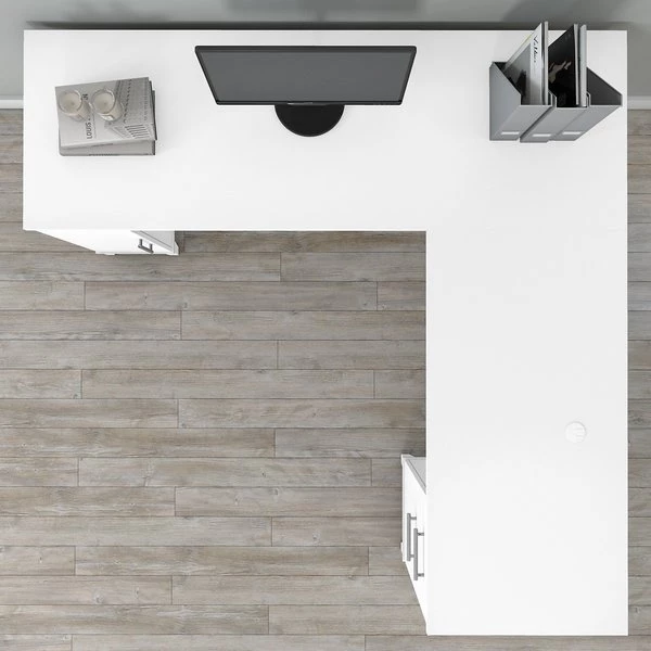 Make a professional statement while maximizing the potential of your home office with the Bush Furniture Somerset 72W L Shaped Desk. This expansive workspace offers plenty of room to spread out and complete large projects. Create your remote work headquarters with space for a computer, phone, printer and more with wire management to keep cords and cables secure and out of sight. A convenient pull-out shelf provides a perfect place to keep a keyboard or laptop. The stylish and functional corner desk design includes a vertical storage cabinet with an adjustable shelf to store items of various sizes. Place pens, paper and more office utensils in the box drawer, and enjoy a file drawer gliding on smooth ball bearing slides for an easy reach to letter-sized documents. The keyboard tray and pedestals mount on either side of the L Shaped Desk for a customizable home office design. Transitional styling includes your choice of attractive finishes with tapered leg accents and contemporary metal hardware for an alluring appearance to match your current decor. This L Desk with Storage is tested to meet ANSI/SOHO quality standards for safety and performance. Add the coordinating 72W Hutch (sold separately) for additional storage and display capacity and see the full Somerset Collection for items available to complete your workspace.