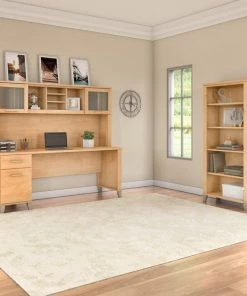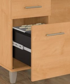 An expansive work surface and built-in storage make the Bush Furniture Somerset 72W Office Desk with Drawers a perfect choice for your home office. The spacious desktop offers plenty of room to spread out with a computer and paperwork and includes a convenient wire management grommet to keep cords and cables secure and out of sight. The Desk's file drawer opens on smooth full-extension ball bearing slides for easy access to legal and letter size documents while a box drawer keeps the office supplies and utensils you need close by. Drawers can be mounted to either side for a custom configuration, and a fully finished back side allows the Desk to look great no matter where it's positioned in the room. Somerset's transitional styling includes your choice of several attractive finish options with tapered leg accents and contemporary metal hardware for an appealing look that works with virtually any decor. The computer desk can also be used with the coordinating Somerset 42W 3 Position Sit to Stand Return (sold separately) to create an ergonomic height adjustable workspace. The 72W Office Desk with Drawers is tested to meet ANSI/SOHO quality standards for safety and performance. See the full collection for products to expand your home or small office with sophisticated style.