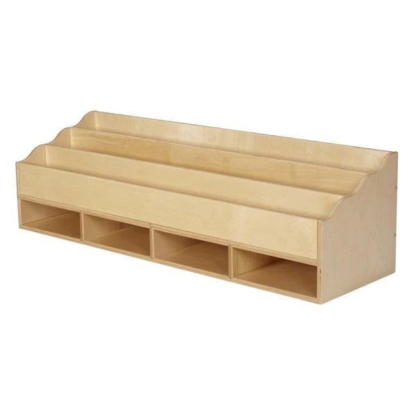 <p>Features three shelves for easy book browsing, plus four storage cubbies that can hold paper or trays sized 13 L x 10-1/2 W x 2-7/8 D inches, sold separately. Units can be stacked up three high and includes hook and loop strips for securing to other 14-1/4 D inch storage units or on a table top or surface. Assembled. 47-3/4 W x 14-1/4 D x 13-3/4 H inches. </p><strong>Features</strong><ul><li>Stacker Book Display</li></ul><strong>Specifications</strong><ul><li><strong>Material:</strong> Birch Plywood</li><li><strong>Number of Shelves:</strong> 3</li><li><strong>Product Depth:</strong> 14-1/4 in.</li><li><strong>Product Height:</strong> 13-3/4 in.</li><li><strong>Product Width:</strong> 47-3/4 in.</li></ul>