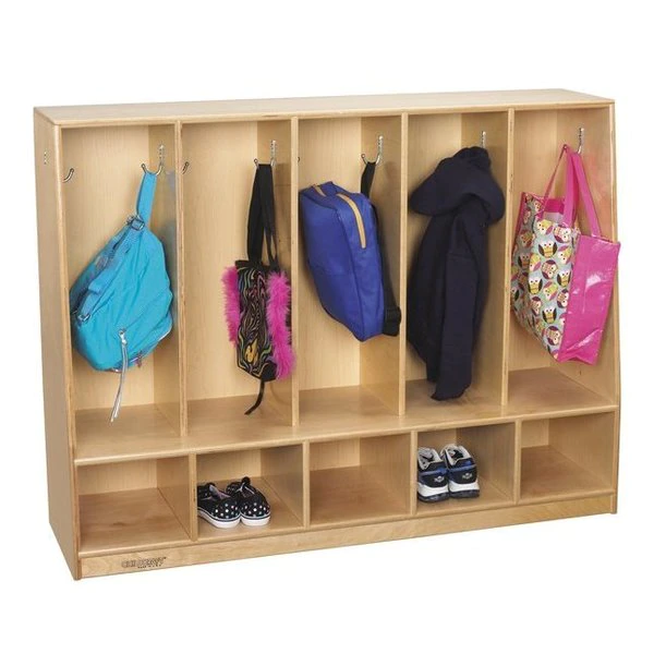 Constructed with all-birch veneer panels with dado construction for added strength and durability, and screw block reinforced top panels. Unit is protected with 4 coats of environmentally friendly, chemical and stain resistant, UV acrylic finish. Upper shelves measure 10 x 10-1/8 x 6-1/4 inches. Bottom space accommodates cubby trays (sold separately) up to 9-3/4 W x 13 D x 7-1/2 H inches. <strong>For maximum stability, lockers must be secured to the wall. Not recommended as a room divider.</strong>
