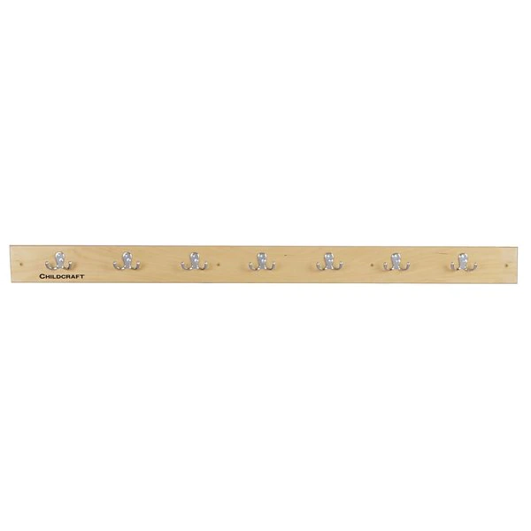 Childcraft® offers a convenient storage rack for coats and backpacks in any environment. Built with seven aluminum, double hooks mounted on an 11-ply birch panel. Conveniently assembled. Measures 47-15/16 W x 1-7/8 D x 4 H inches. Weighs 5 pounds. Made with a UV acrylic finish. Crafted in the USA.