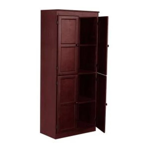 The Concepts in Wood 5 shelf storage cabinet is ideal for use as a pantry in the kitchen, or in the office, laundry, bedroom, garage or any room where additional concealed storage is needed. This is a piece of furniture constructed of wood veneer panels and solid wood accent pieces. To ensure a superior uniform color each door is assembled and hand finished and the entire storage cabinet gets a 10 step zero VOC emission polyurethane Cherry finish that is durable, beautiful, and resists stains for years. 3 adjustable shelves allow you to customize for short or tall items. Two fixed shelves offer extra support and structural reinforcement. Each shelf can hold 70lbs. of evenly distributed weight. Wood is sourced from the USA and assembled in Mexico. Create a wall of storage and add additional storage cabinets next to each other as your storage needs grow. Ready to assemble.70 lb. weight capacity per shelf for superior durability, 3 adjustable shelves and 2 fixed shelves to accommodate large and small itemsHandcrafted storage cabinet using genuine wood veneers and solid wood molding that enhances durability and won’t crack or peel like paper laminatesTo ensure a superior uniform color each door is assembled and hand finished and the entire storage unit gets a 10 step polyurethane Cherry finish that is durable, beautiful, and resists stains for years, environmentally friendly zero VOC emissionsQuick, simple assembly with dowels, camlocks and an engineered wood back panel that is more durable than the cardboard on most ready to assemble cabinetsAll wood veneers, panels, solid hardwood wood, and other materials are imported from the U.S. and assembled in Mexico Create a wall of storage, designed to be stacked next to each other as your storage needs grow 2-year limited warranty, Dimensions: 72" H x 30" W x 17.125" D