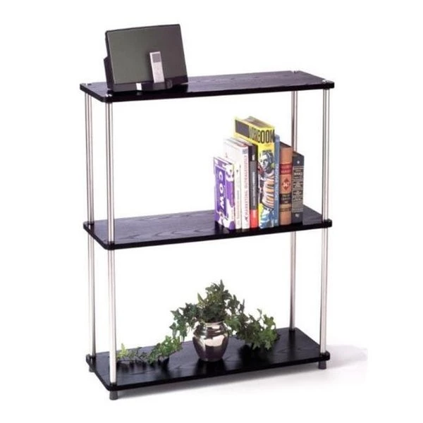 The open shelves of the Deisgns2Go 3-Tier Bookshelf Shelf brings you easy storage access. Featuring 3 levels of spacious storage that is designed to meet your space needs while providing durable and efficient furniture. This shelving unit will add a bold touch to any room.No Tools Required Large Shelves for DisplayBeautiful Woodgrain FinishStainless Steel PolesWill Provide Years of EnjoymentDimension: 33.625" H x 31.5" W x 11.875" D.Weight: 20 lbs.