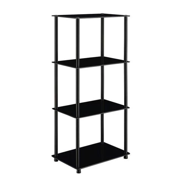 The Designs2Go Classic Glass 4 Tier Tower makes the perfect contemporary addition to any living space in your home. The modern style of this four-tier tower enhances the aesthetic appeal of this fixture. The shelves are made from tempered glass. making this tower stylish and sturdy. With four shelves. display and decorative options are endless. The four stainless legs will provide additional stability and will not warp or rust. With easy assembly and little maintenance needed. this Classic Glass 4 Tier Tower can be used in any room including the bathroom. Complete your modern look by shopping the entire Designs2Go Classic Glass collection by Convenience Concepts. SpecificationsTable Top Type: GlassColor: BlackWeight: 22 lbs