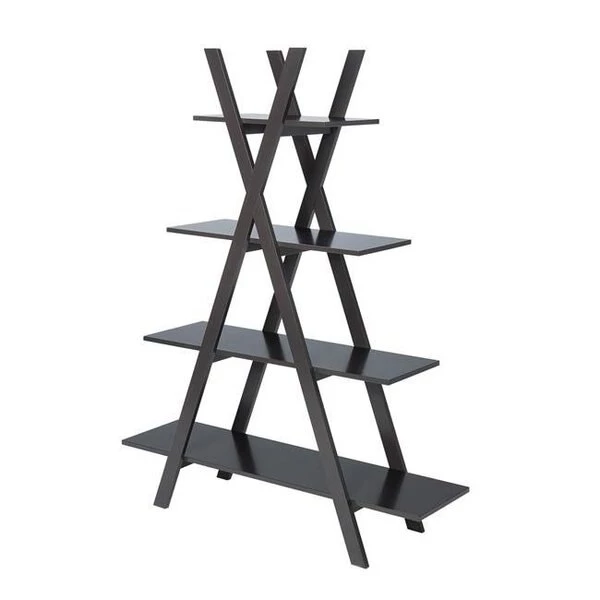 FeaturesGive your home a handsome makeover with the oxford 4 tier a frame bookcaseThe open shelving concept of this bookcase features 4 tiers that allow plenty of space to display books and collectiblesFeaturing clean lines this piece is also provided in multiple finishes so it will be sure to complement any decorCrafted with functionality and contemporary styling in mind the oxford 4 tier a frame bookcase will become a staple in your homeSpecificationsFinish: EspressoType: BookcaseDimension: 59 x 13 x 45.5 in.Weight: 38 lbs