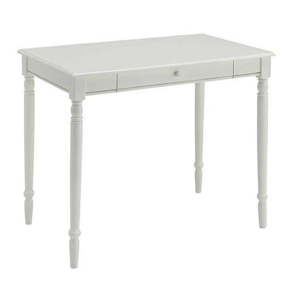 The White French Country desk is the perfect way to brighten up any home office or even dorm room. The 36" workspace is the perfect size for any project and the keyboard tray allows for easy storage. With Easy assembly and lots of legspace you'll enjoy it for years. 36" Workspace Keyboard TrayBright Neutral FinishEasy Assembly Tools ProvidedWill Provide Years of Enjoyment >Dimensions – 36 x 22 x 30 in. weight 30 lbs
