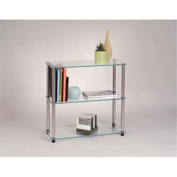 Designs2Go Classic Glass 3 Tier Shelf Bookcase is the perfect complement to any living room décor. Featuring an open modern design that provides 3 spacious glass shelves for decoration collections or art objects. Surely will provide years of enjoyment. No Tools Required Tempered GlassSets Up in MinutesStainless Steel Poles won't RustWill Provide Years of EnjoymentDimensions: 28L x 11.87W x 26.5 H Weight: 29.25 lbs Glass
