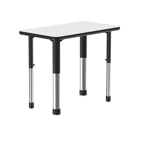 Correll Adjustable Height Collaborative Desk. White 23"x33" Rectangular shaped top. HPL Laminate resists scratch's, paint, markers, crayons, and food and juice stains far better than melamine. Black adjustable height legs can be set from 25” to 35” in 1” increments and includes Hex Wrench for fast height adjustments. Backer sheet on underside of table helps in preventing moisture from entering the table and causing warping. Correll helps you create a modern creative transformable workspace. Strong steel frame and Black T-Mold edging to protect the table as well as your walls. Heavy Duty yet portable for easy storage. Ideal for demanding environments. YOU CAN COUNT ON CORRELL: Correll was established in 1969 and has been in business for over 50 years. With our out Standing Customer Service, innovative new product lines, and the largest selection of Folding Tables available from any manufacturer, now, more than ever, you can count on Correll.
