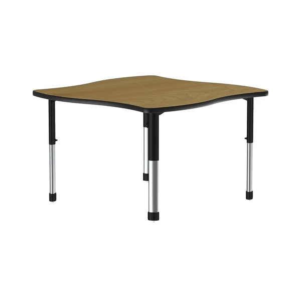 Correll Adjustable Height Collaborative Desk. Fusion Maple 23"x33" Swerve shaped top. HPL Laminate resists scratch's, paint, markers, crayons, and food and juice stains far better than melamine. Black adjustable height legs can be set from 25” to 35” in 1” increments and includes Hex Wrench for fast height adjustments. Backer sheet on underside of table helps in preventing moisture from entering the table and causing warping. Correll helps you create a modern creative transformable workspace. Strong steel frame and Black T-Mold edging to protect the table as well as your walls. Heavy Duty yet portable for easy storage. Ideal for demanding environments. YOU CAN COUNT ON CORRELL: Correll was established in 1969 and has been in business for over 50 years. With our out Standing Customer Service, innovative new product lines, and the largest selection of Folding Tables available from any manufacturer, now, more than ever, you can count on Correll.