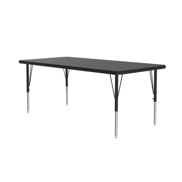 Correll Height Adjustable Activity Table. Thermal Fused Laminate (TFL) is a resin infused laminate not glued on like high pressure laminate, it is fused to the board using a heat treatment process. Table Size is 30"x72" Rectangle. Height adjustable from 19" to 29" in 1" increments (perfect for kindergarten to adult) Speedwrench included for fast and secure height adjustments. Black Granite top resists scratches, dents, paint, markers, crayons, and food and juice stains far better than melamine. 1 1/4" thick high density top is sealed on both sides preventing moisture from entering the table and causing warping. Heavy Duty legs include oversize hairpin brace and shouldered set screws for maximum safety. Shoulder on leg set screw provides an extra measure of security even if the legs are not properly tightened. Leg mounting brackets are pre attached with 7 screws plus 3 additional screws in the leg plate. Black T-Mold edging and black and chrome legs. Tables are custom built to order. YOU CAN COUNT ON CORRELL: Correll was established in 1969 and has been in business for over 50 years. With our outstanding Standing Customer Service, innovative new product lines, and the largest selection of Folding Tables available from any manufacturer, now, more than ever, you can count on Correll.