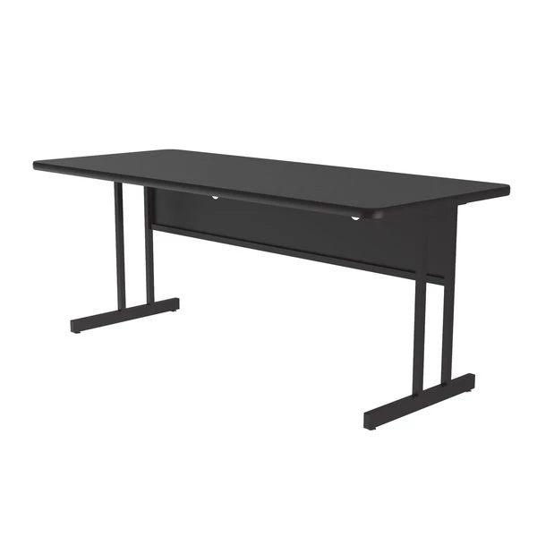 Correll Desk Height workstation. 30"x72" Black Granite Thermal Laminate Top. 1-1/4" thick Two Sided Thermal Laminate surface, resists scratches and stains and offers a hard, flat writing surface. Thermal Fused Laminate (TFL) is a resin infused laminate not glued on like high pressure laminate, it is fused to the board using a heat treatment process. Top is sealed on both sides preventing moisture from entering the table and causing warping. Steel modesty panel with wire management. Black T-Mold edging to protect walls and table. Sturdy all steel frame with adjustable nylon leveling guides. YOU CAN COUNT ON CORRELL: Correll was established in 1969 and has been in business for over 50 years. With our outstanding Standing Customer Service, innovative new product lines, and the largest selection of Folding Tables available from any manufacturer, now, more than ever, you can count on Correll.
