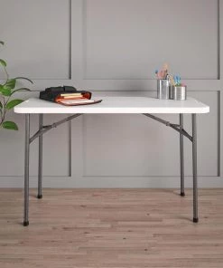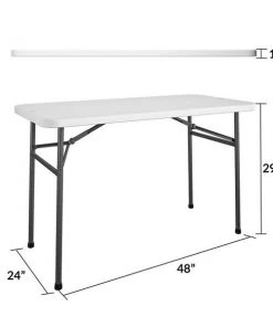 The Cosco 4ft. A straight folding utility table offers a versatile solution for everyday needs such as working from home hosting parties or events camping tailgating or crafting. This durable blow mold table is portable and user-friendly. This table is designed for maximum compatibility and comfortably sits four people. Includes non-marring foot caps to protect any floor surface from scratches or damage. Perfect addition to help make your life easier and more organized.