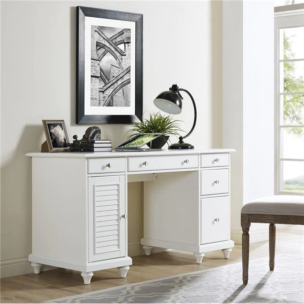 Classic styling. signature louvers and ample storage are just a few highlights of the new Palmetto computer desk from Crosley Furniture. Featuring drop-down keyboard storage. file drawer. and plenty of wire management. the Palmetto computer desk does not sacrifice modern amenities for its good looks. Upgrade your home office. or place in the family room as a convenient stop to pay bills. wherever Palmetto goes. style will follow. FeaturesPalmetto Computer Desk. WhiteDurable Steel FrameEasy To AssembleSpecificationsColor: WhiteWeight: 127 lbs