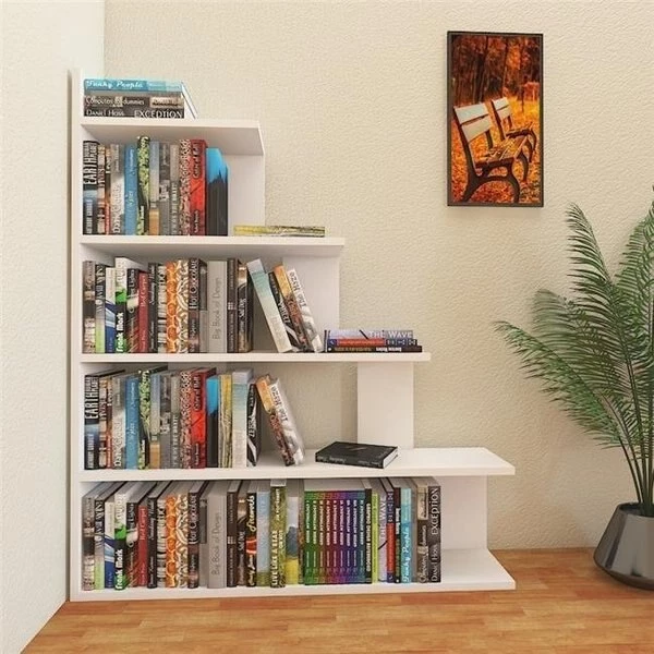 Showcasing ladder design with 5 open tiers. this Ziolkowski Ladder Bookcase brings stylish sophistication to any space. Simple yet enticing. this bookcase is an ideal option to place in your living room. study room. home library or office. It is also a good option to use it for corners. Apart from using it to organize your books and magazines. this bookshelf can also be utilized to display decorative pieces. vases. picture frames and chunky candles. FeaturesEcho Accent Ladder Bookcase Bookshelf Shelving Unit18 mm Manufactured woodSpecificationsCollection: EchoShelf Material: WoodAssembly Required: YesSize: 47 in.Weight: 30 lbs