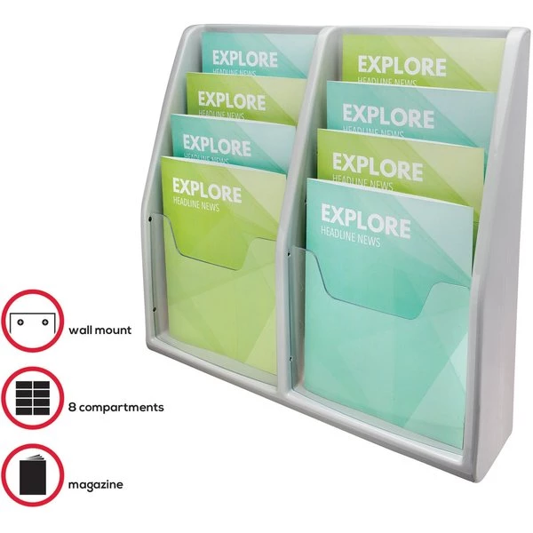 Literature Displays,8 Cmprtmnt,Grey, PK2