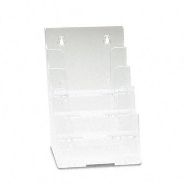 Displays a variety of literature at once while saving valuable counter space.Perfect for use in lobbies restaurants libraries and more.Countertop or wall mount.Dimensions: 6-1/2" W x 10" H x 6-1/4" D.Color: Clear.