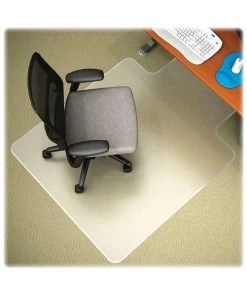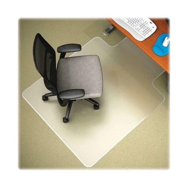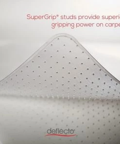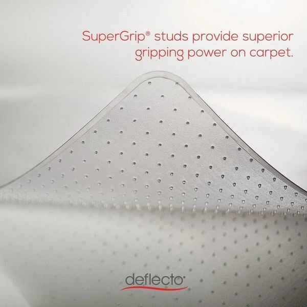 DuraMat Chairmat with a lip is designed and properly weighted for firm, low-pile carpets up to 3/8" thick with little or no padding. Textured surface delivers scuff-resistance and slip-resistance. Beveled edge allows smooth, on-and-off chair movement. Studded-back chairmat is made from the highest-quality materials resulting in maximum transparency. Free and Clear formula produces an exceptionally clear mat that is nonphthalate, noncadmium, BPA-free and lead-free. Lip measures 19" wide x 10" long.