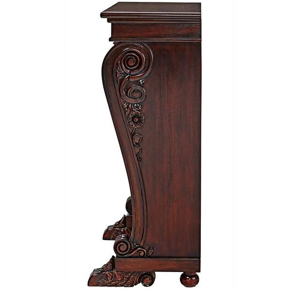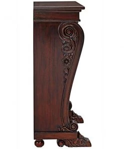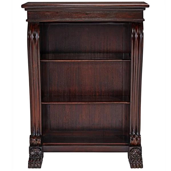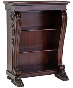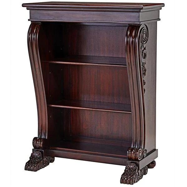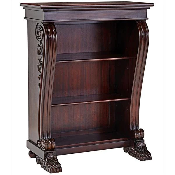 With a heritage all its own, this wonderfully imaginative, George IV style bookcase rises from paw feet with shell details and guides the eye along its shapely serpentine scroll front. Three lower shelves and a beautifully finished top are ready for your collectibles and first editions or those of your favorite bibliophile. Traditionally crafted, our Design Toscano-exclusive mahogany work of furniture art is hand finished in a rich, dark stain to further beautify this fine antique replica that s at home in most any room. 291⁄2"Wx14"Dx391⁄2"H. 62 lbs.