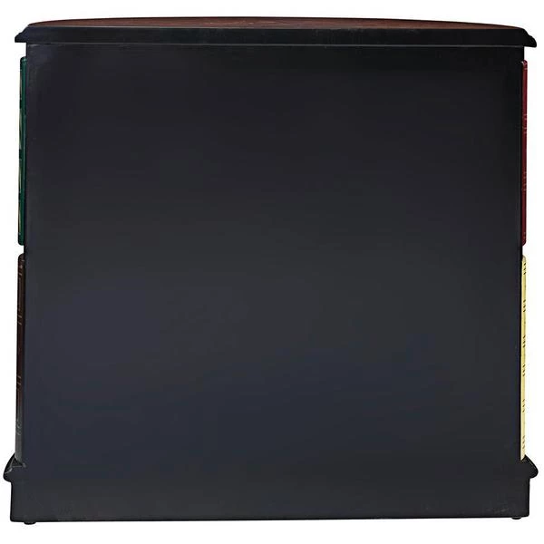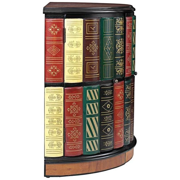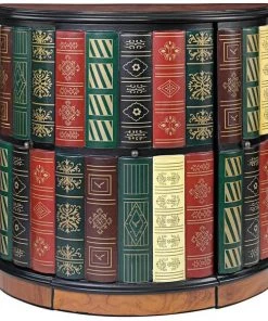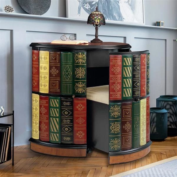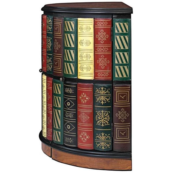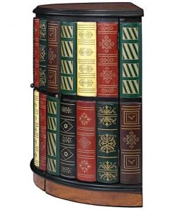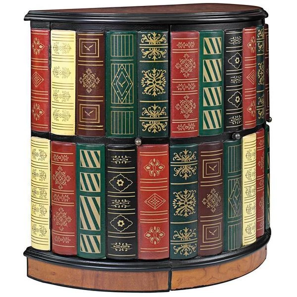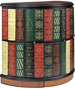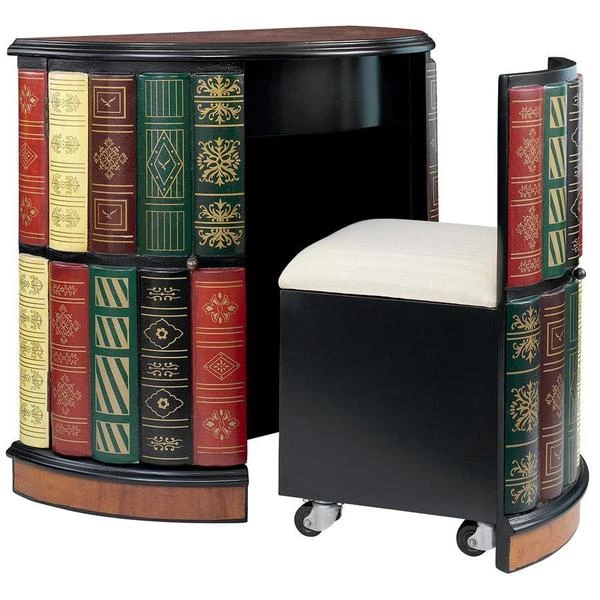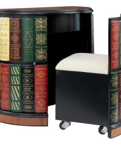 They ll never guess! What initially appears to be a half-round bookshelf slides open to reveal a library console desk with its own cushioned barrel chair on casters. Two sets of triple shelves and a slide-out drawer allow room for hidden treasure. Our fool the eye" piece boasts an extraordinary, hand-painted, lacquer-finished top of faux burled wood with an ebony trim. As clever as it is functional, this sleek, space-saving and quite novel design is an instant heirloom for most any room. 321⁄2"Wx181⁄2"Dx30"H. 85 lbs.