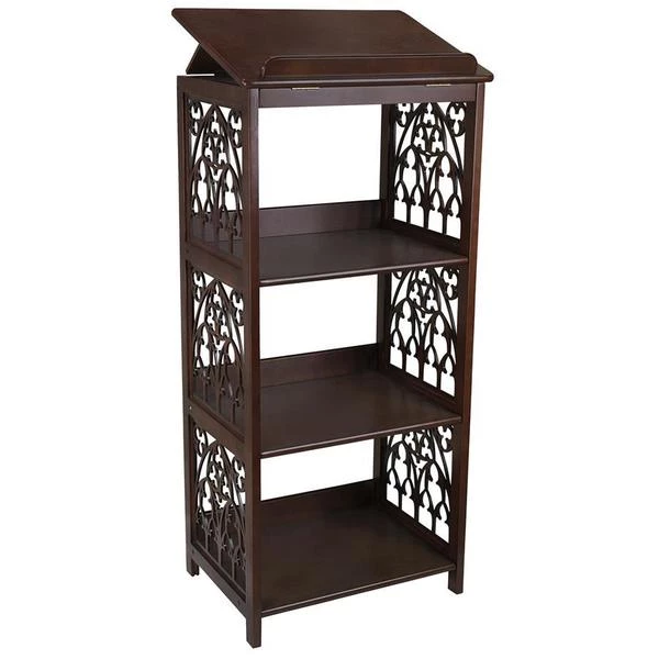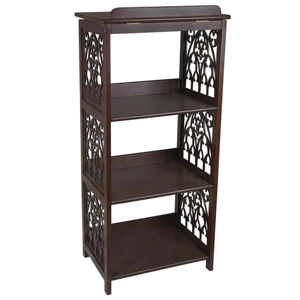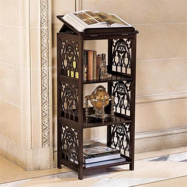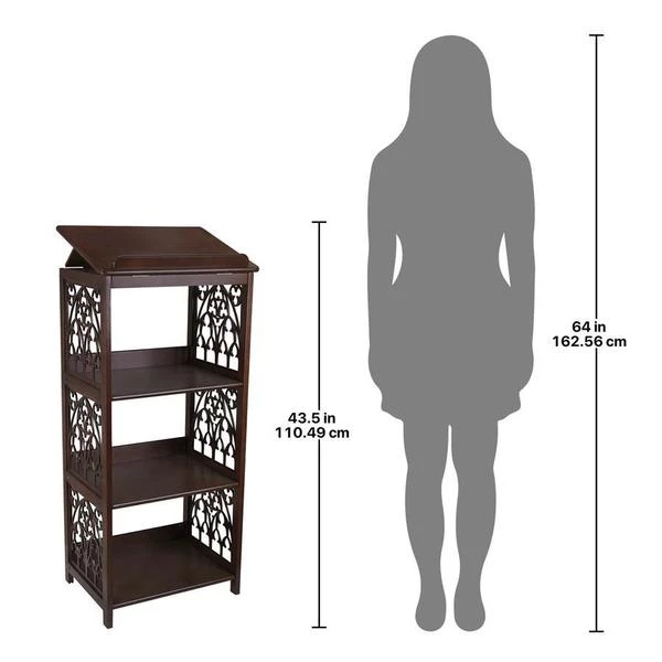 Named for the patron of schools, our Toscano-exclusive, 18th-century antique replica is perfect for showcasing your favorite tome atop its optionally raised display stand. Three generous shelves for your books and collectibles are flanked by intricately Gothic-patterned fretwork and are hand-crafted from select hardwood with a rich finish. Simple assembly required. 201⁄2"Wx15"Dx431⁄2"H. 30 lbs.