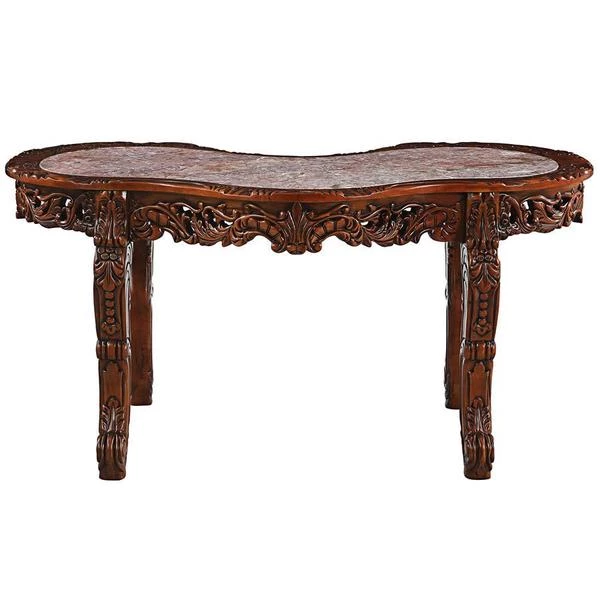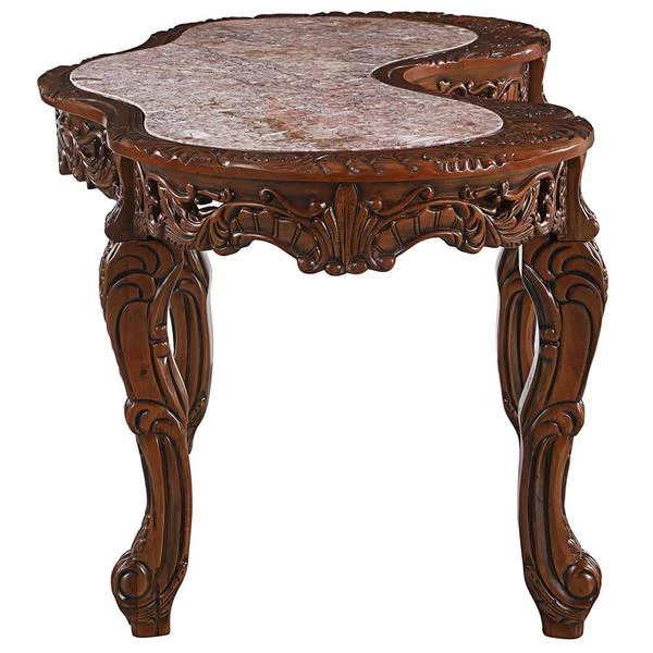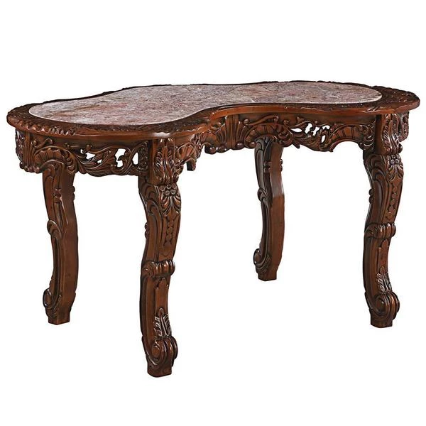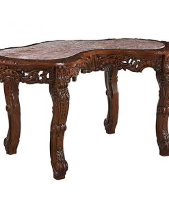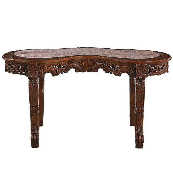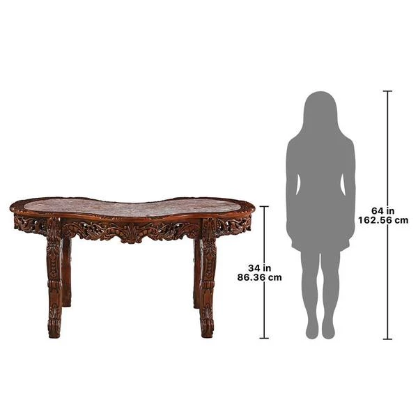 Hand-carved to be admired from all angles, this spectacular executive desk curves to impress with details from its variegated marble-inlaid top to its richly hand-carved, pierced apron. A five-foot expanse of pure drama, this heirloom work of functional furniture art requires a full week of hand-carving by our most experienced wood craftsmen. This Design Toscano-exclusive investment is a timeless table for your office that reflects a luxurious lifestyle. Simple assembly required. Chair not included. 60"Wx32"Dx30"H. 102 lbs.