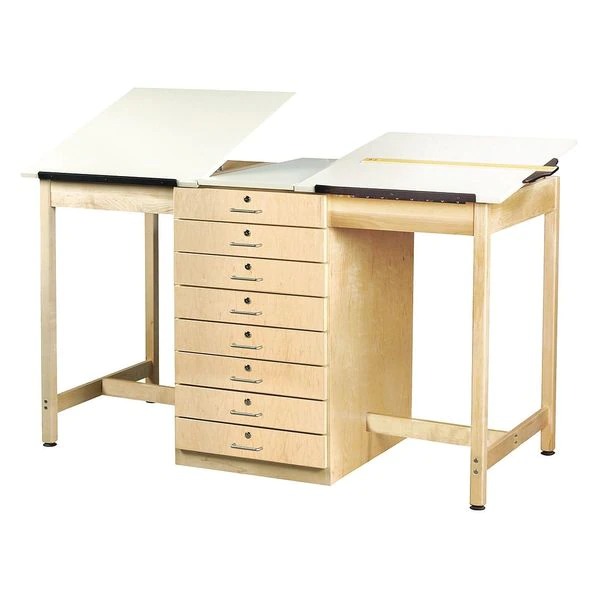 Diversified Woodcrafts Rectangle Drafting Table, 2 Station, 8 Drawer, 70" X 39-3/4", Almond