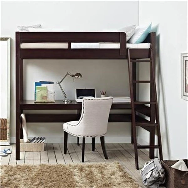 Valued by parents for the compact footprint and beloved by teens for the fun factor. the Dorel Living Harlan Loft Bed with Desk offers a complete solution to your teen's room. This loft bed is built with a comfortable sleeping space with a spacious and useful workstation underneath. FeaturesSlat design on headboard and footboardFull length guardrail4-step ladder includedSturdy wood construction in an espresso finishDesigned to accommodate a standard size twin mattress (sold separately)Support slats included;; box spring not requiredSpecificationsColor: EspressoMaterial: WoodUsage: IndoorStyle: TraditionalWeight: 160.6 lbs