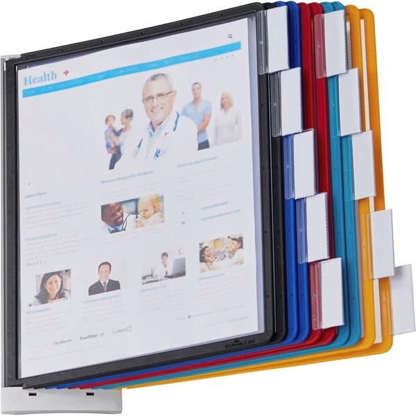 Durable Sherpa 10-Panel Wall Reference System – Wall Mountable – 10 Panel/Pocket – Support Letter 8.50" x 11" Media – Expandable – Assorted – Polypropylene Panel – 1 Each – Sherpa display wall reference system blends sturdy plastic construction with contemporary design. System includes a wall bracket, 10 letter-size panel sleeves (20 viewing sides) with reinforced molded borders, and 10 snap-on tabs. Display expands by adding systems side by side.