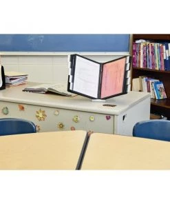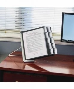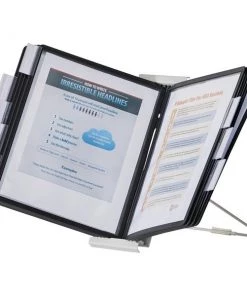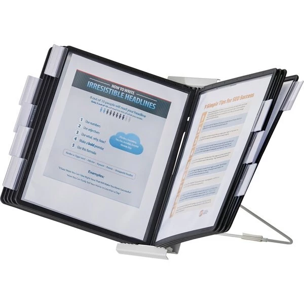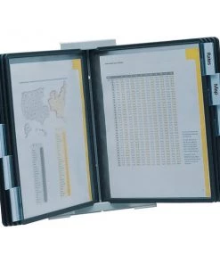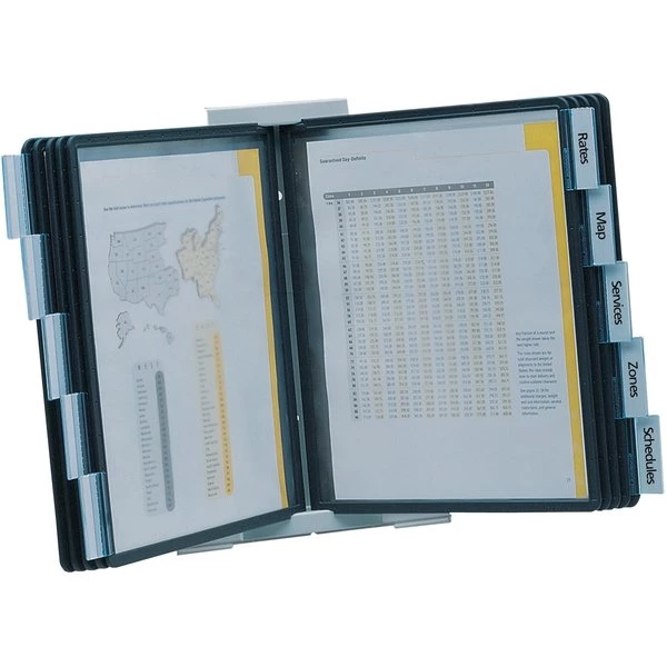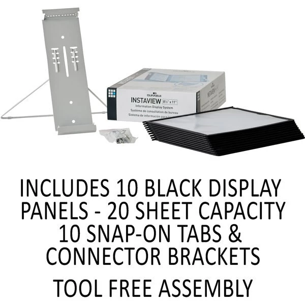 Durable InstaView Desktop Reference System – Desktop – 10 Panel/Pocket – Support Letter 8.50" x 11" Media – White, Border – Polypropylene Panel, Metal Stand – 1 Each – Desk reference system offers a way to keep frequently used reference documents at your fingertips. Display important document in the included 10 letter-size, nonglare, double-sided polypropylene panels (20 viewing sides) with rigid borders and five snap-on tabs. Reference system includes a wire desk stand and two snap-on connectors. To expand, use included connectors to link systems together. Additional InstaView systems are sold separately.
